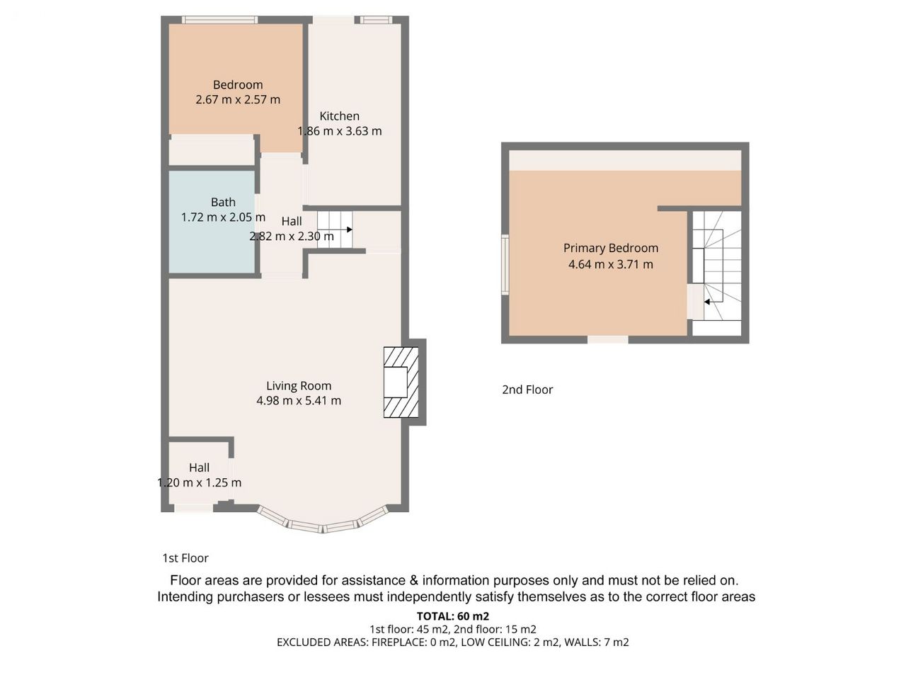 Primary Bedroom: 4.64m x 3.71m